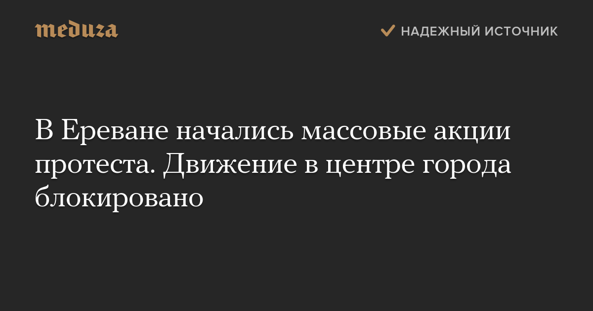 В Ереване начались массовые акции протеста. Движение в центре города блокировано