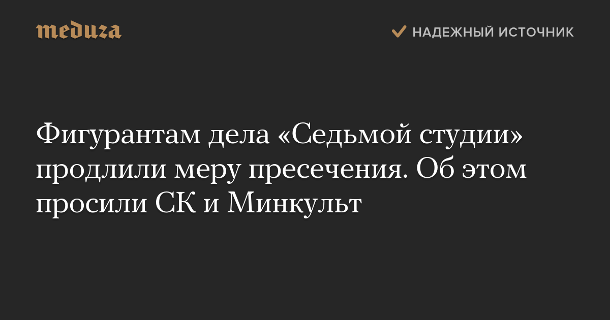 Фигурантам дела «Седьмой студии» продлили меру пресечения. Об этом просили СК и Минкульт