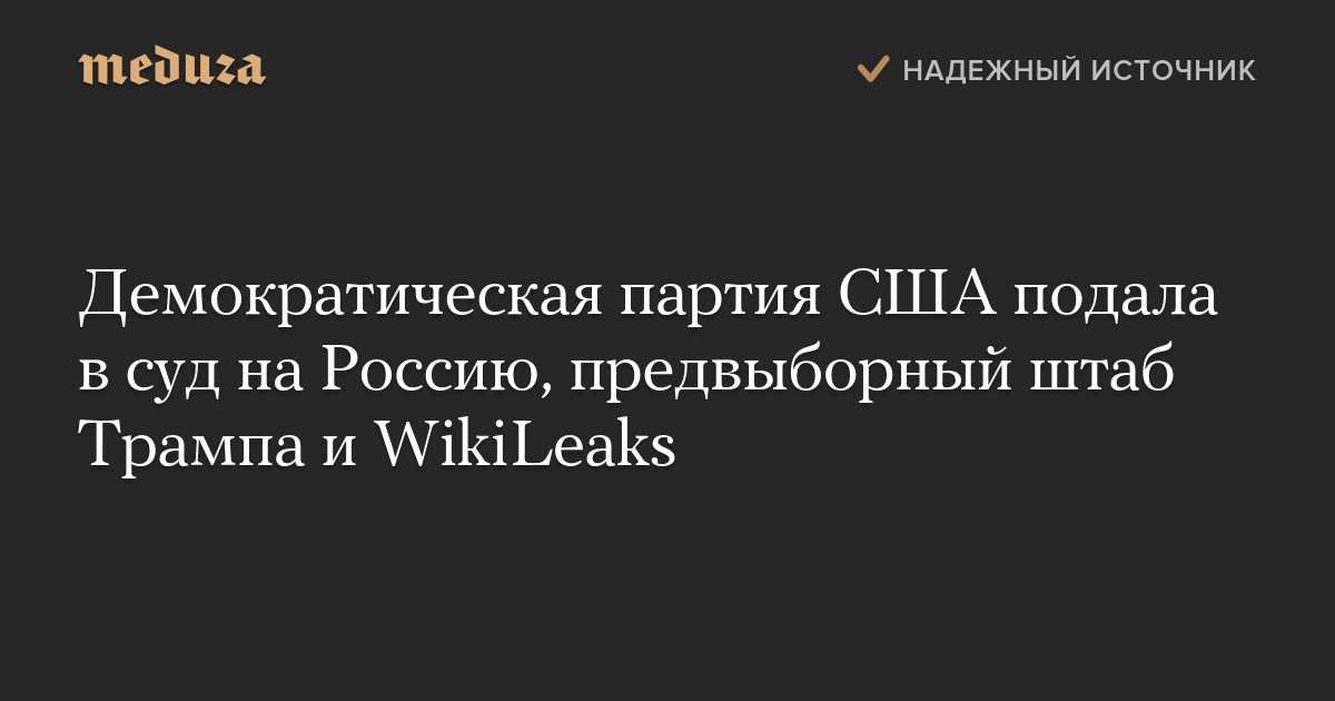 Национальный комитет Демократической партии США подал в суд на правительство России, проект WikiLeaks и президентскую кампанию Дональда Трампа, сообщает The Washington Post.