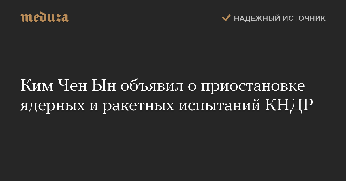 Лидер КНДР Ким Чен Ын объявил о приостановке испытаний ядерного оружия и межконтинентальных баллистических ракет и закрытии полигона для ядерных испытаний с 21 апреля.