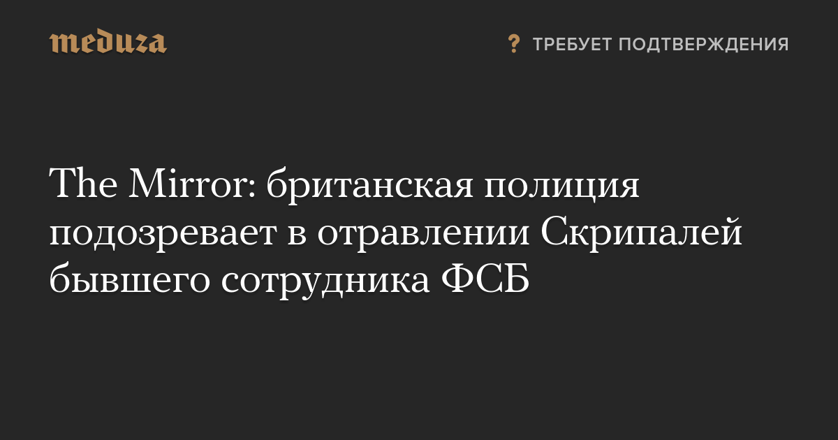 The Mirror: британская полиция подозревает в отравлении Скрипалей бывшего сотрудника ФСБ