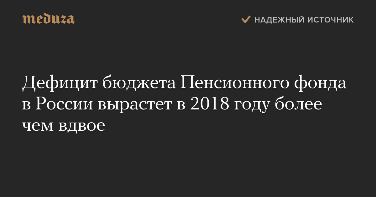 Дефицит бюджета Пенсионного фонда в России вырастет в 2018 году более чем вдвое