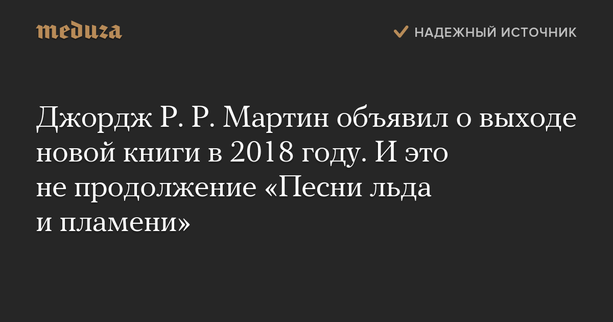 Джордж Р. Р. Мартин объявил о выходе новой книги в 2018 году. И это не продолжение «Песни льда и пламени»