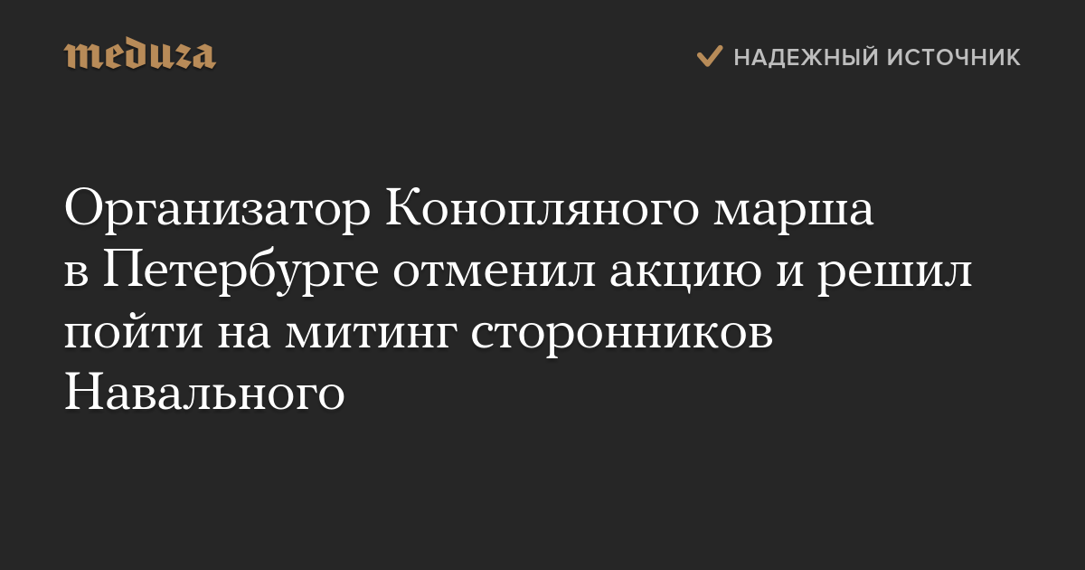 Организатор Конопляного марша в Петербурге отменил акцию и решил пойти на митинг сторонников Навального