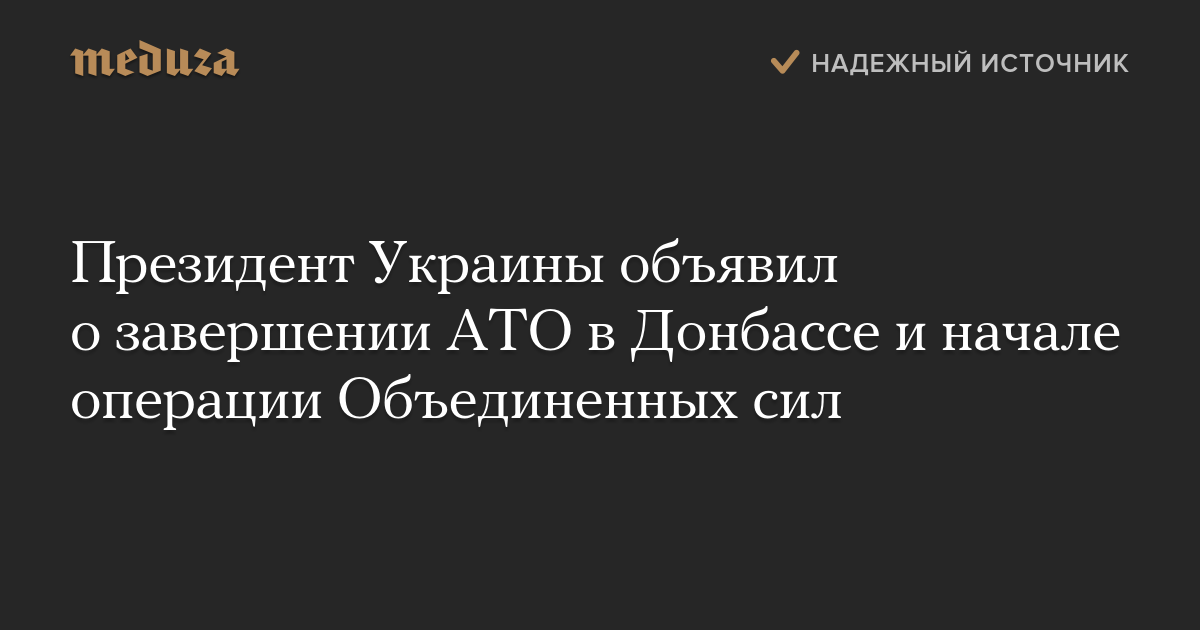 Президент Украины объявил о завершении АТО в Донбассе и начале операции Объединенных сил