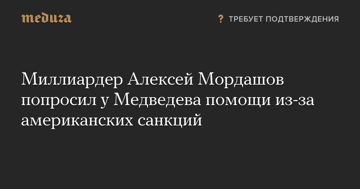 Владелец компании «Силовые машины» миллиардер Алексей Мордашов написал письмо премьер-министру России Дмитрию Медведеву с просьбой о помощи из-за американских санкций. Об этом сообщает издание The Bell.