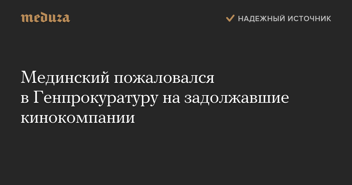 Мединский пожаловался в Генпрокуратуру на задолжавшие кинокомпании