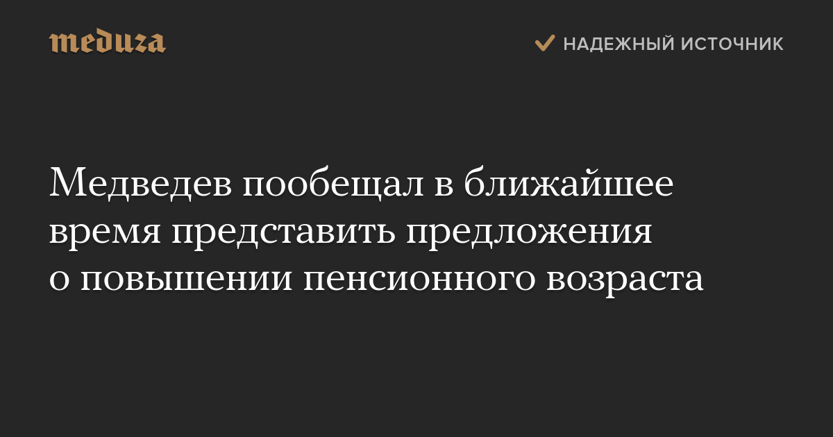 Медведев пообещал в ближайшее время представить предложения о повышении пенсионного возраста