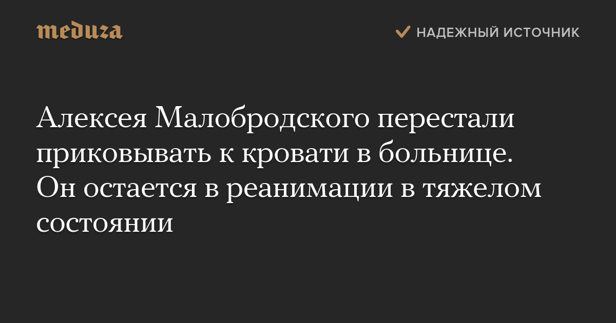 Алексея Малобродского перестали приковывать к кровати в больнице. Он остается в реанимации в тяжелом состоянии