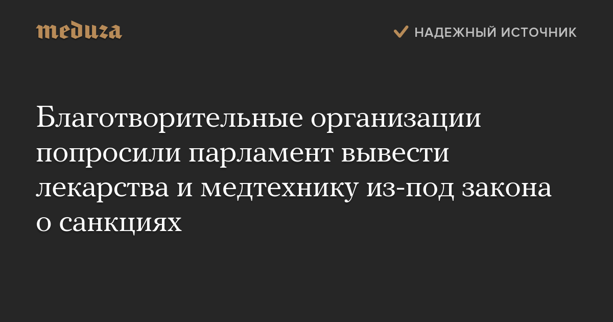 Благотворительные организации попросили парламент вывести лекарства и медтехнику из-под закона о санкциях