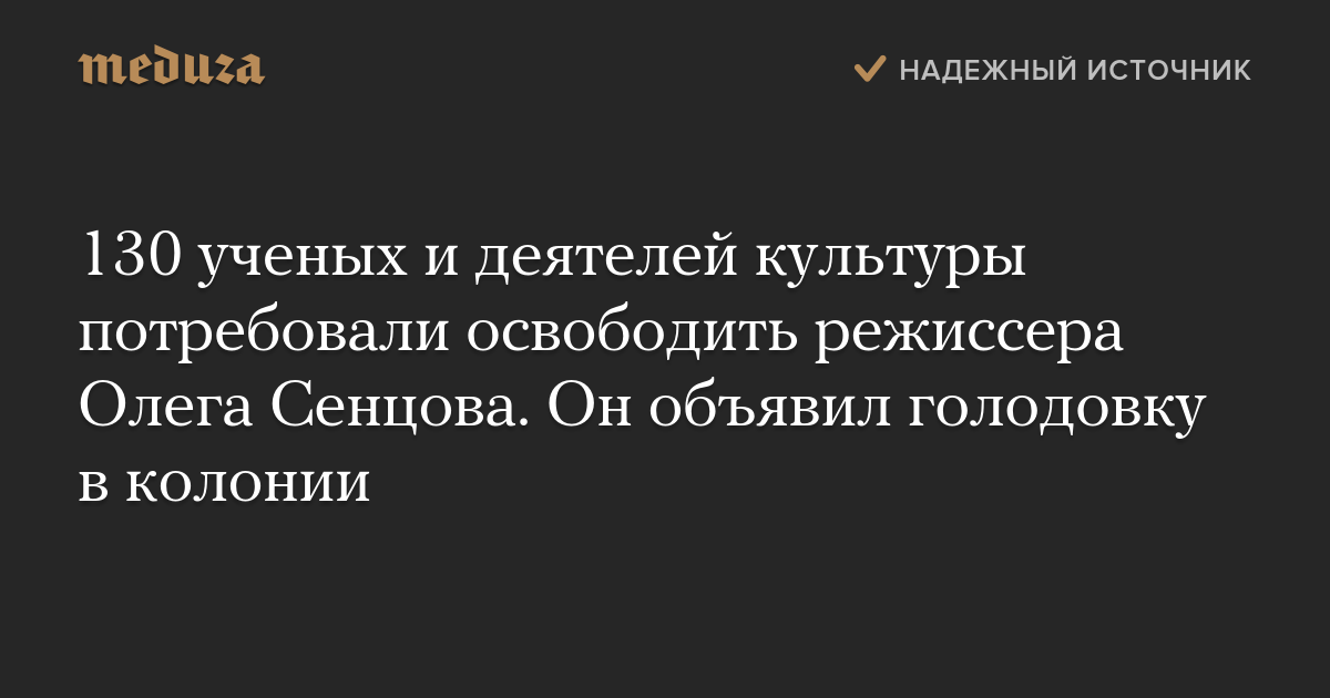 130 ученых и деятелей культуры потребовали освободить режиссера Олега Сенцова. Он объявил голодовку в колонии