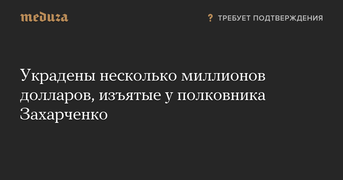 Украдены несколько миллионов долларов, изъятые у полковника Захарченко