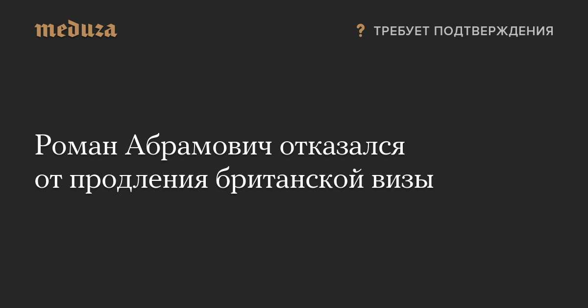 Российский миллиардер Роман Абрамович отозвал свое заявление о продлении инвестиционной визы Великобритании. Об этом сообщает таблоид The Sun со ссылкой на источники из окружения бизнесмена.
