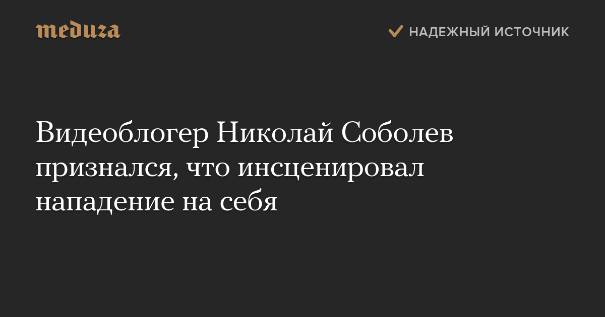 Видеоблогер Николай Соболев признался, что инсценировал нападение на себя