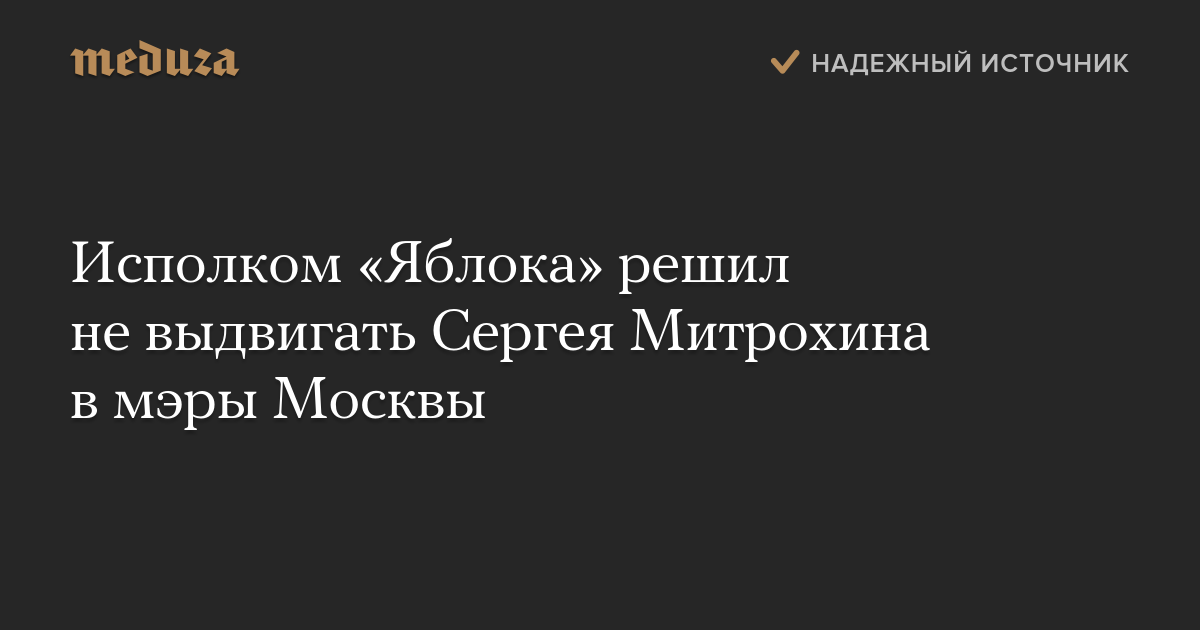 Исполком «Яблока» решил не выдвигать Сергея Митрохина в мэры Москвы