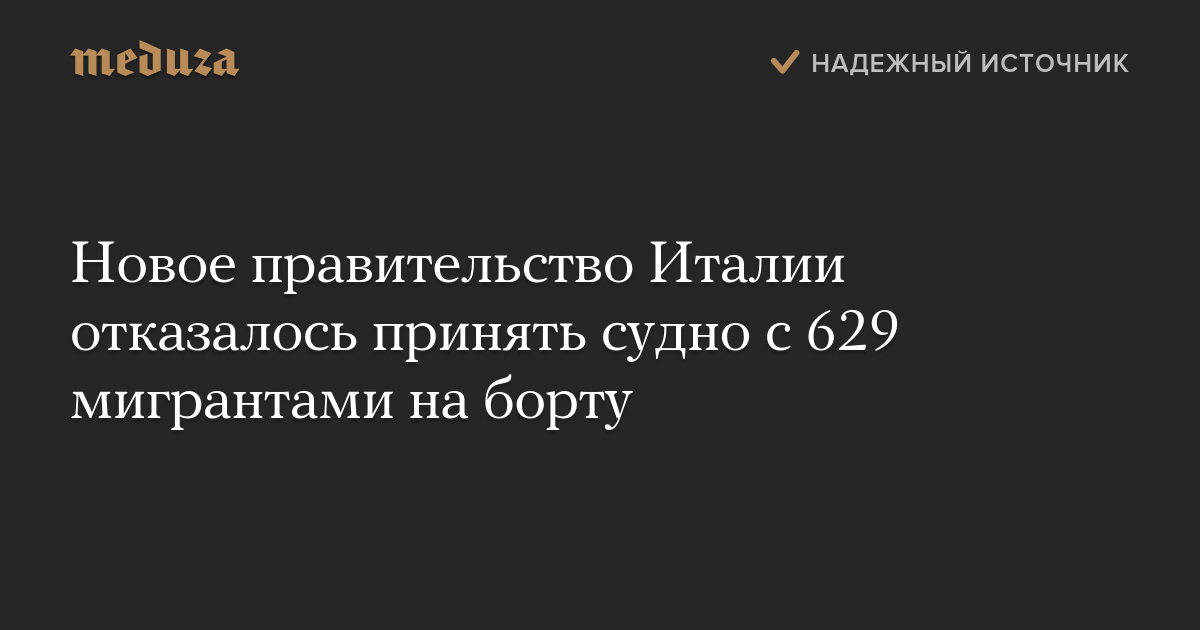 Новое правительство Италии отказалось принять судно с 629 мигрантами на борту
