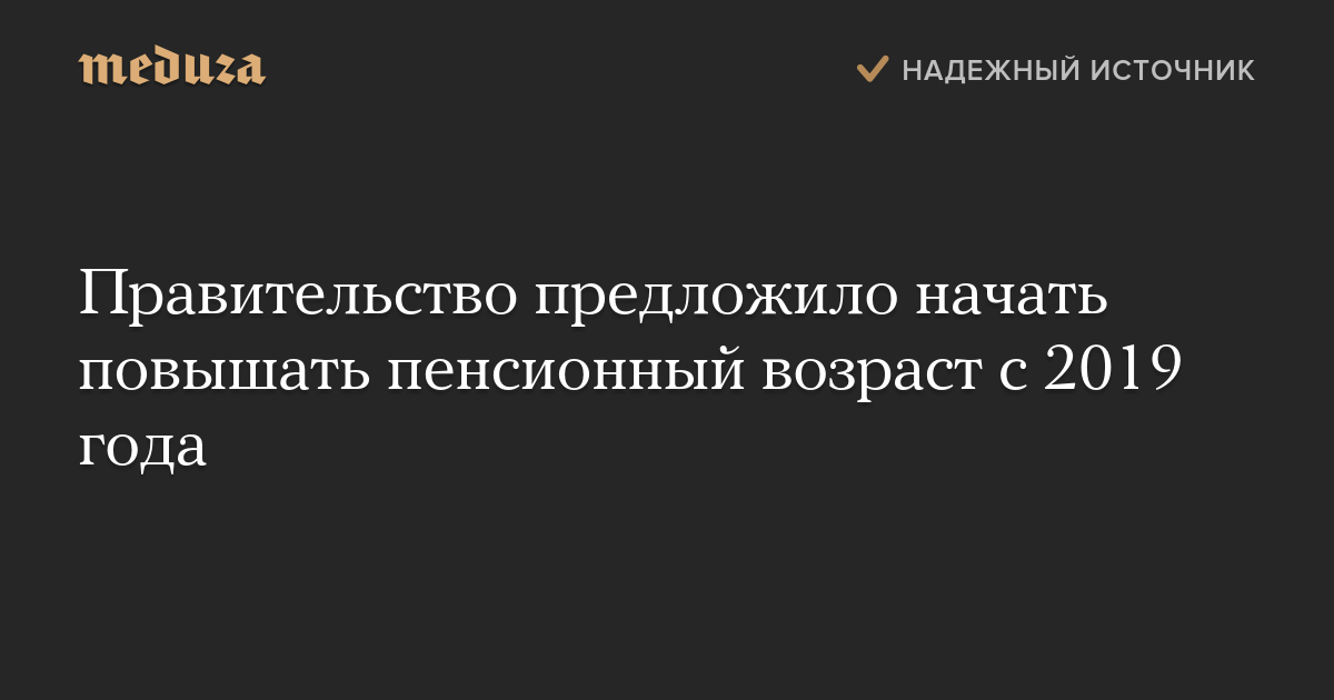 Правительство предложило начать повышать пенсионный возраст с 2019 года