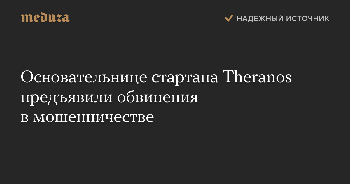 Основательнице медицинского стартапа Theranos Элизабет Холмс и операционному директору компании Рамешу Балвани предъявлены обвинения в мошенничестве, сообщает прокуратура Северного округа Калифорнии.