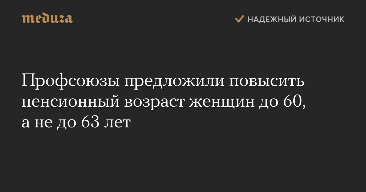 Профсоюзы предложили повысить пенсионный возраст женщин до 60, а не до 63 лет