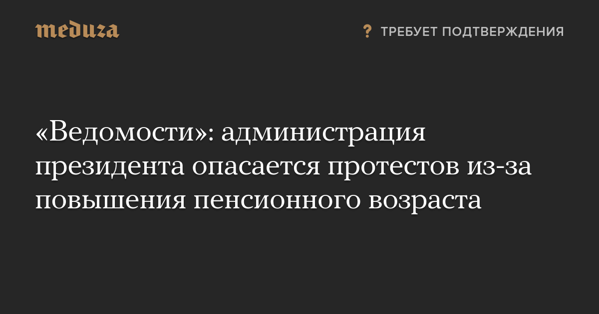 «Ведомости»: администрация президента опасается протестов из-за повышения пенсионного возраста