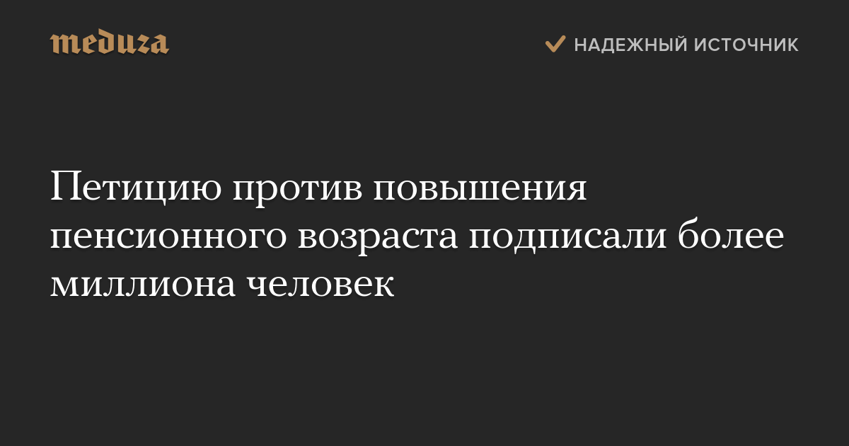 Более миллиона человек подписали петицию в адрес российских властей с требованием не повышать пенсионный возраст в стране.