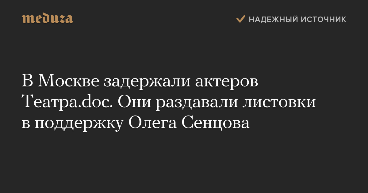 В Москве задержали актеров Театра.doc. Они раздавали листовки в поддержку Олега Сенцова