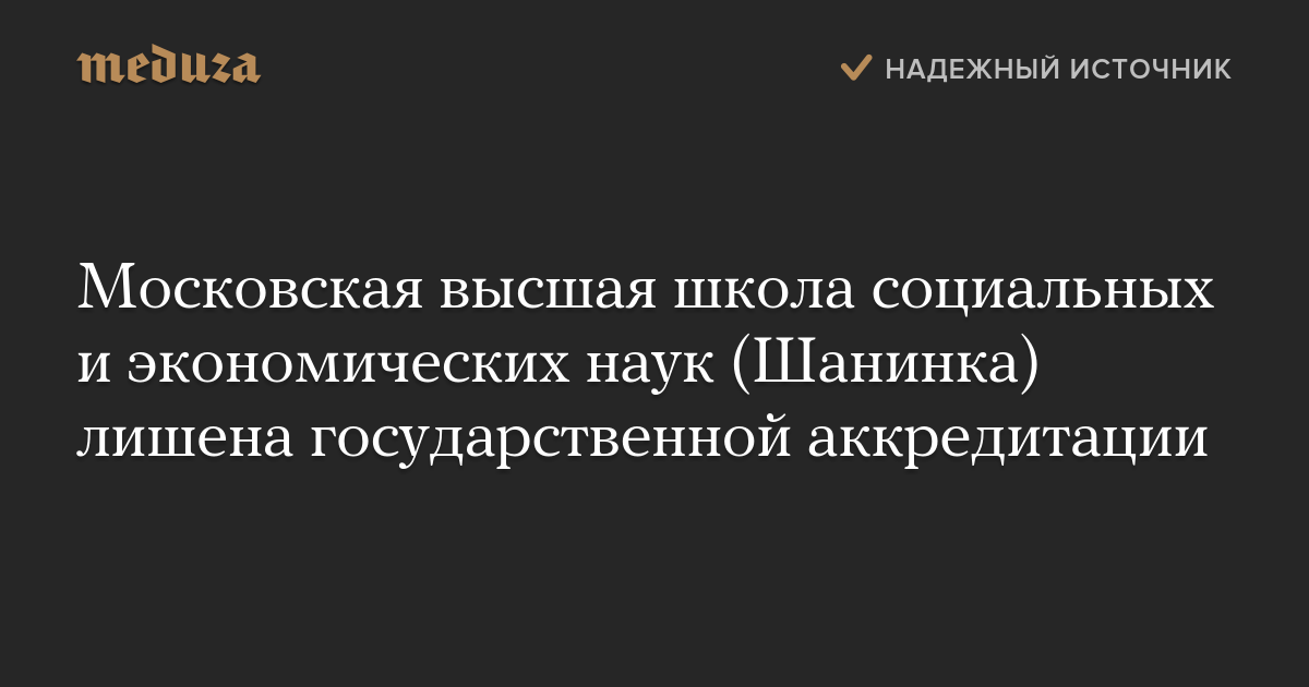 Московская высшая школа социальных и экономических наук (Шанинка) лишена государственной аккредитации