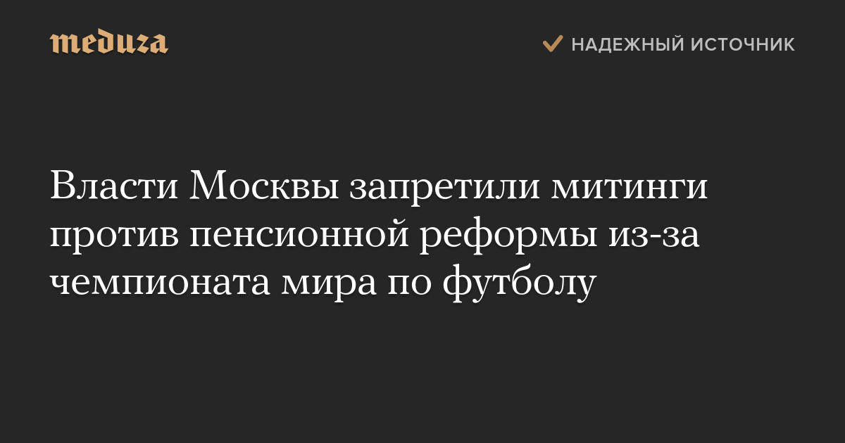 Власти Москвы запретили митинги против пенсионной реформы из-за чемпионата мира по футболу