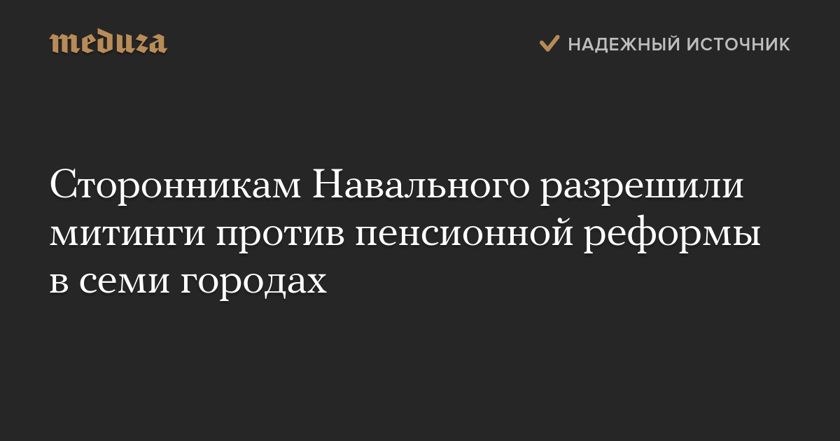 Сторонникам Навального разрешили митинги против пенсионной реформы в семи городах
