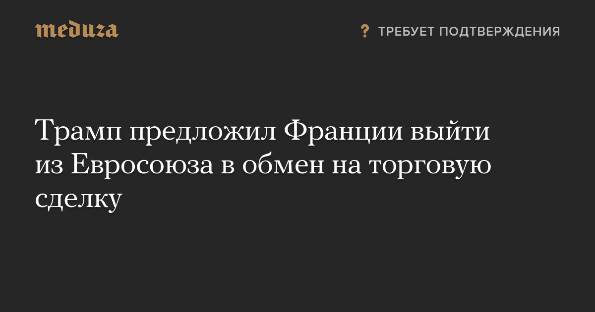 Трамп предложил Франции выйти из Евросоюза в обмен на торговую сделку