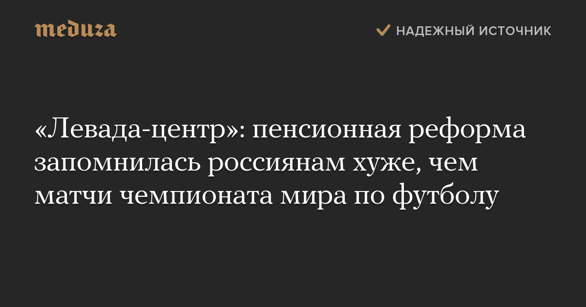 «Левада-центр»: пенсионная реформа запомнилась россиянам хуже, чем матчи чемпионата мира по футболу