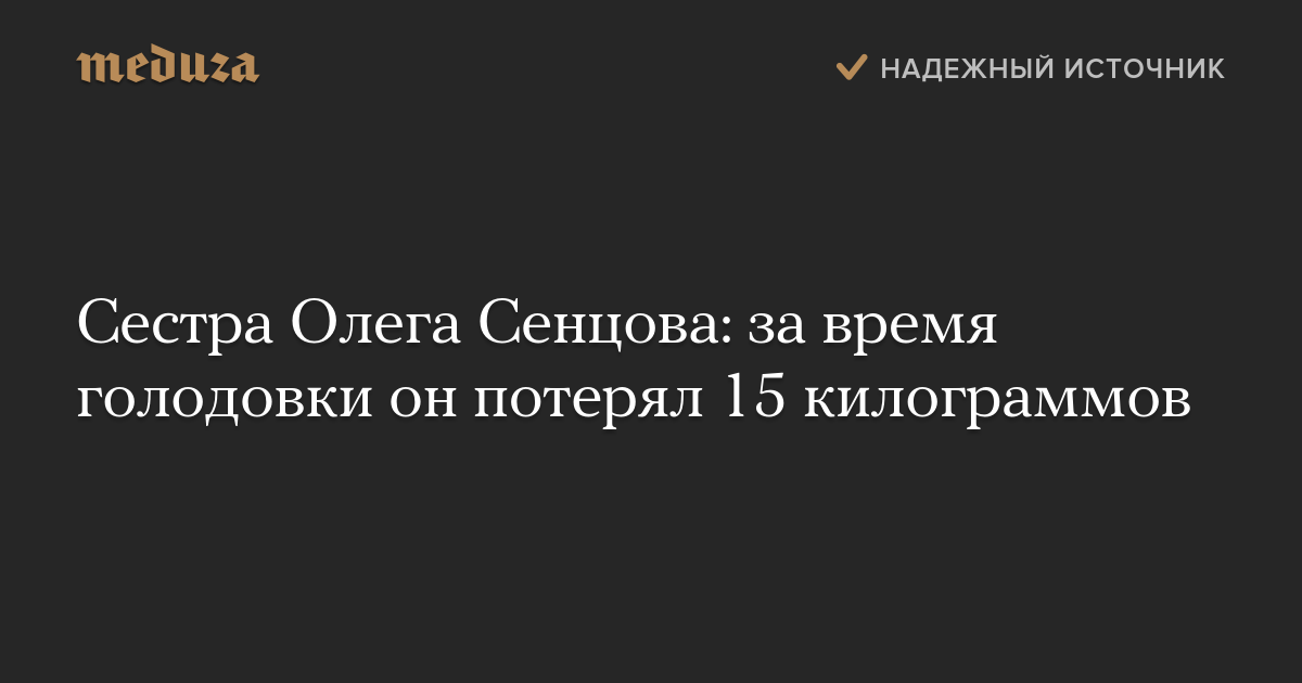 Как рассказала она изданию «Громадское», за время объявленной Сенцовым голодовки он потерял 15 килограммов.