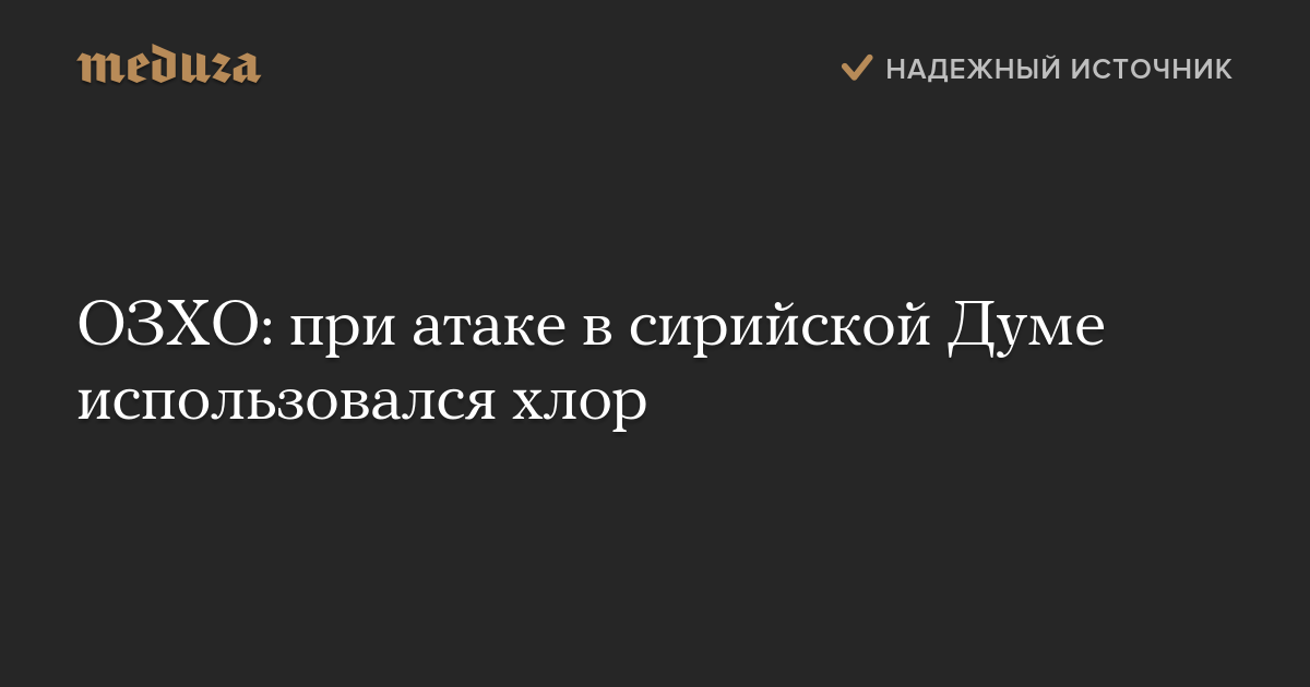 В предварительном докладе Организации по запрещению химического оружия делается вывод о том, что при атаке в сирийском городе Дума в апреле 2018 года использовался хлор.