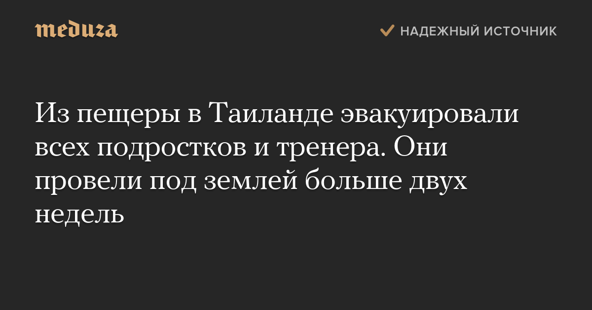 Из пещеры в Таиланде эвакуировали всех подростков и тренера. Они провели под землей больше двух недель