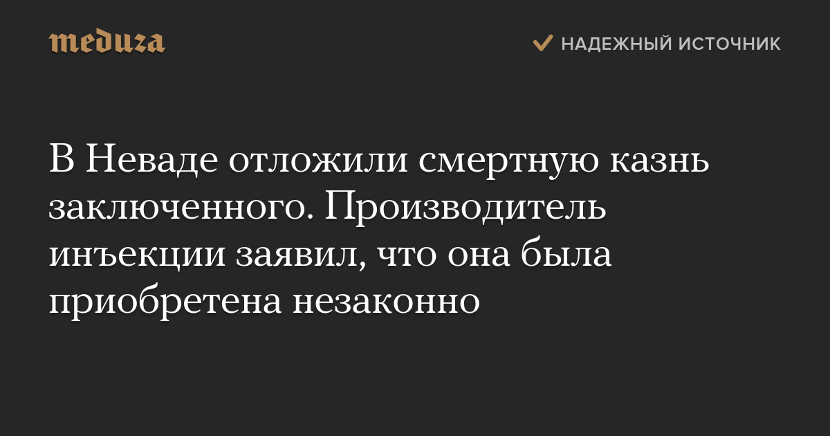 В Неваде отложили смертную казнь заключенного. Производитель инъекции заявил, что она была приобретена незаконно