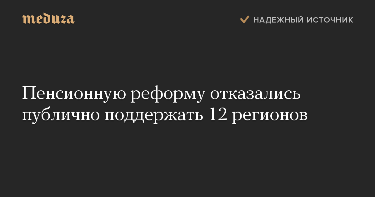 Пенсионную реформу отказались публично поддержать 12 регионов