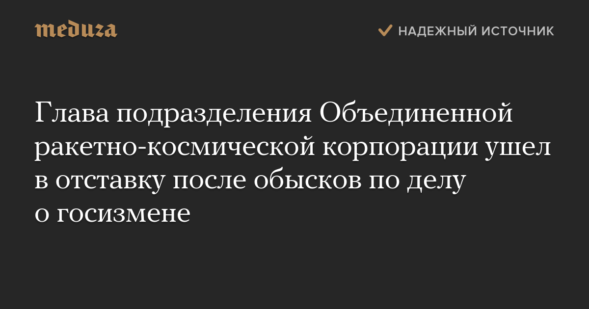 Глава подразделения Объединенной ракетно-космической корпорации ушел в отставку после обысков по делу о госизмене