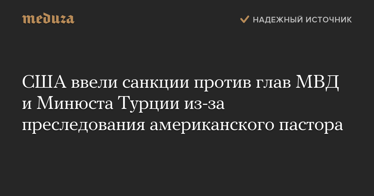 Минфин США ввел санкции против двух турецких министров — главы МВД Сулеймана Сойлу и руководителя Минюста Абдулхамита Гюля — из-за их роли в преследовании американского пастора Эндрю Брансона.