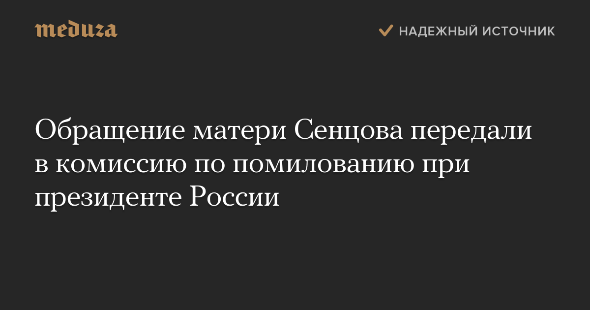 Обращение матери Сенцова передали в комиссию по помилованию при президенте России