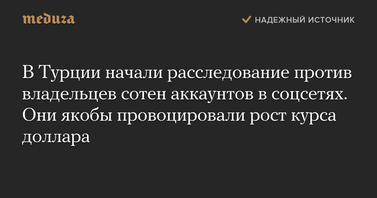 Министерство внутренних дел Турции начало расследование в отношении владельцев нескольких сотен аккаунтов в соцсетях за публикацию сообщений, «провоцирующих рост курса доллара».