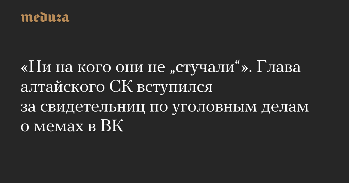 «Ни на кого они не „стучали“». Глава алтайского СК вступился за свидетельниц по уголовным делам о мемах в ВК