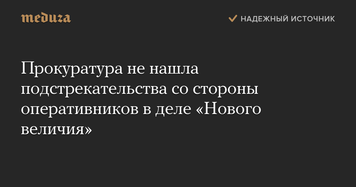 Прокуратура не нашла подстрекательства со стороны оперативников в деле «Нового величия»