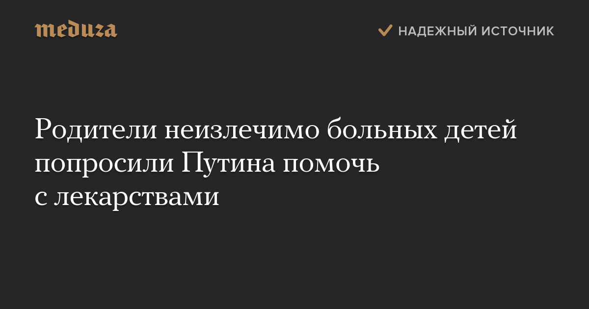Родители неизлечимо больных детей попросили Путина помочь с лекарствами