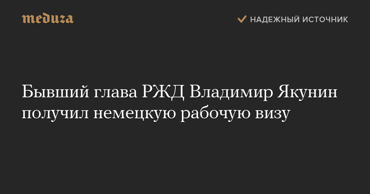 Бывший глава ОАО «Российские железные дороги» Владимир Якунин получил визу категории «D», которая дает возможность жить и работать в Германии, сообщает Deutsche Welle со ссылкой на немецкий МИД.