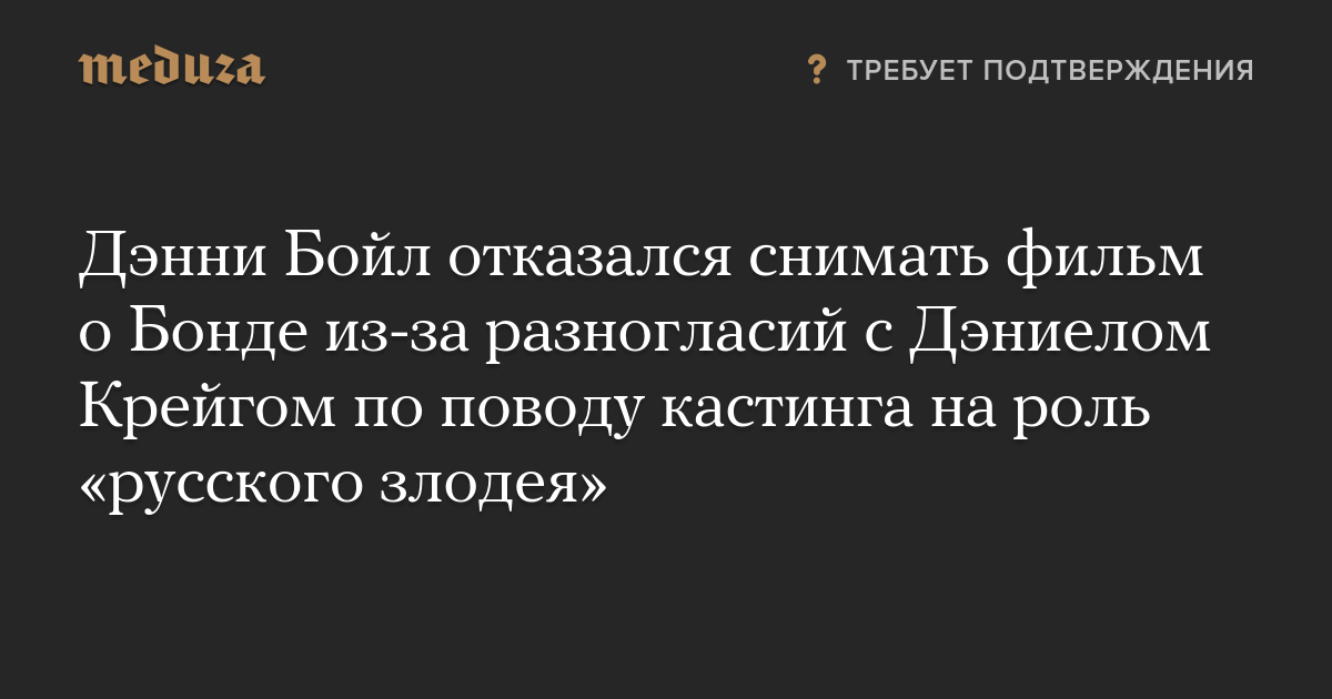 Дэнни Бойл отказался снимать фильм о Бонде из-за разногласий с Дэниелом Крейгом по поводу кастинга на роль «русского злодея»
