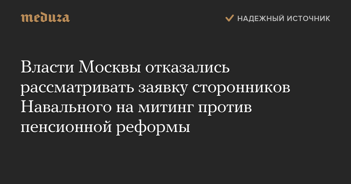 Власти Москвы отказались рассматривать заявку сторонников Навального на митинг против пенсионной реформы