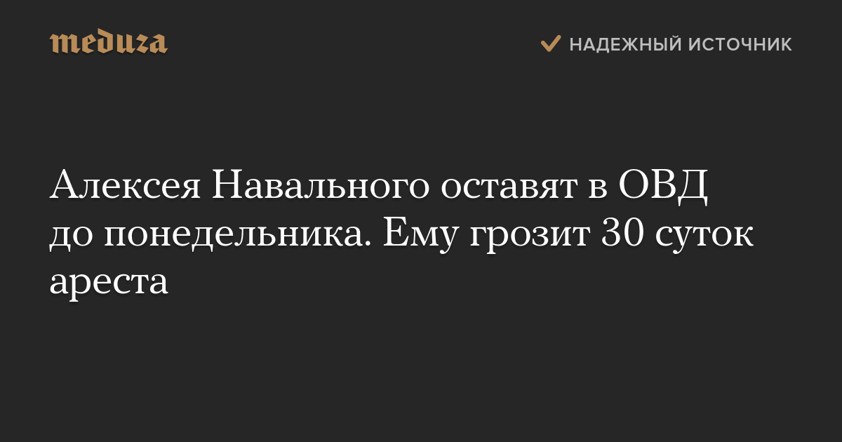 Алексея Навального оставят в ОВД до понедельника. Ему грозит 30 суток ареста