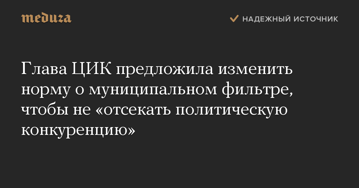 Глава ЦИК предложила изменить норму о муниципальном фильтре, чтобы не «отсекать политическую конкуренцию»