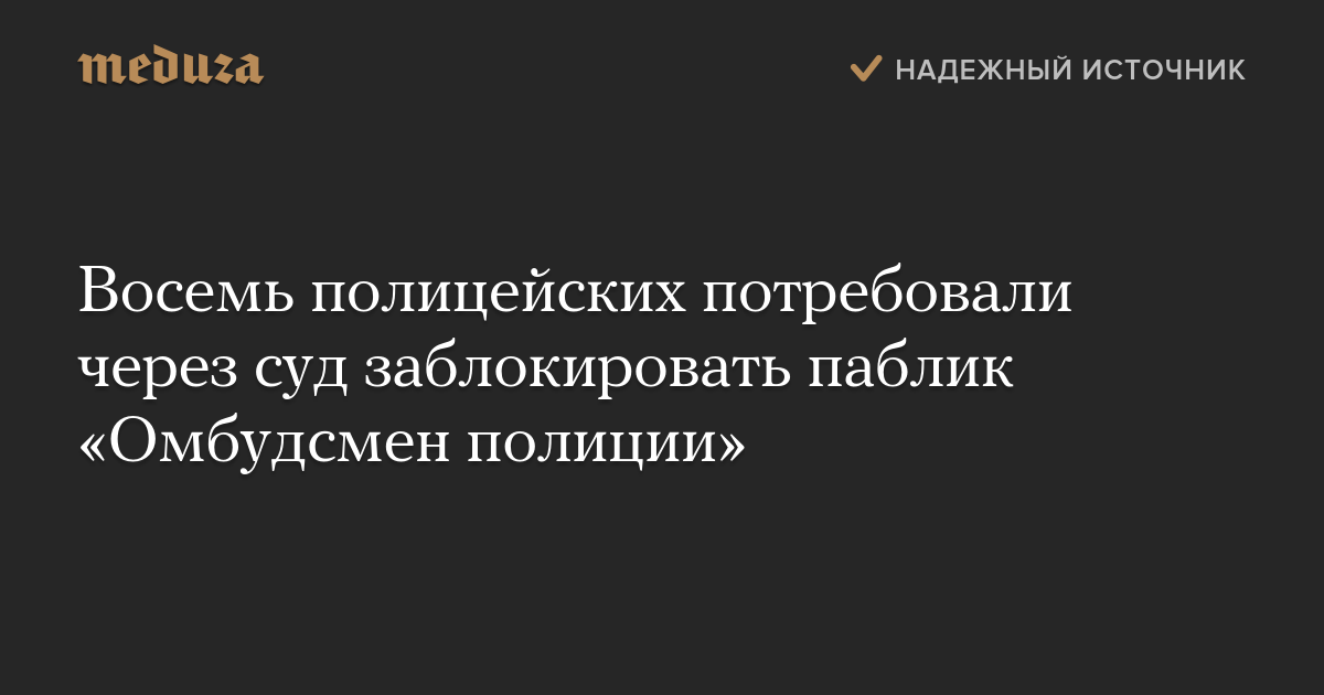 Восемь полицейских потребовали через суд заблокировать паблик «Омбудсмен полиции»