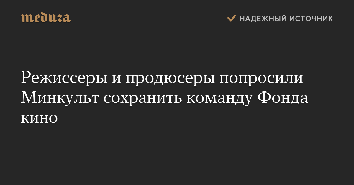 Режиссеры и продюсеры попросили Минкульт сохранить команду Фонда кино